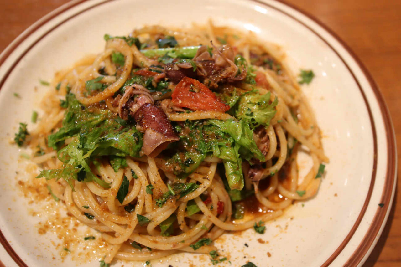 麺は、濃厚な具材をどっしりと受け止める太めのタイプ。ニンニクと唐辛子の香りをまとったソース、ホタルイカの磯の香り、そしてからすみの塩気が三位一体となり、噛むほどに多層的な味わいが押し寄せます。「これ、ランチで食べていいの?」と自問してしまうほど、特別な日のディナーを彷彿とさせる贅沢な構成です。